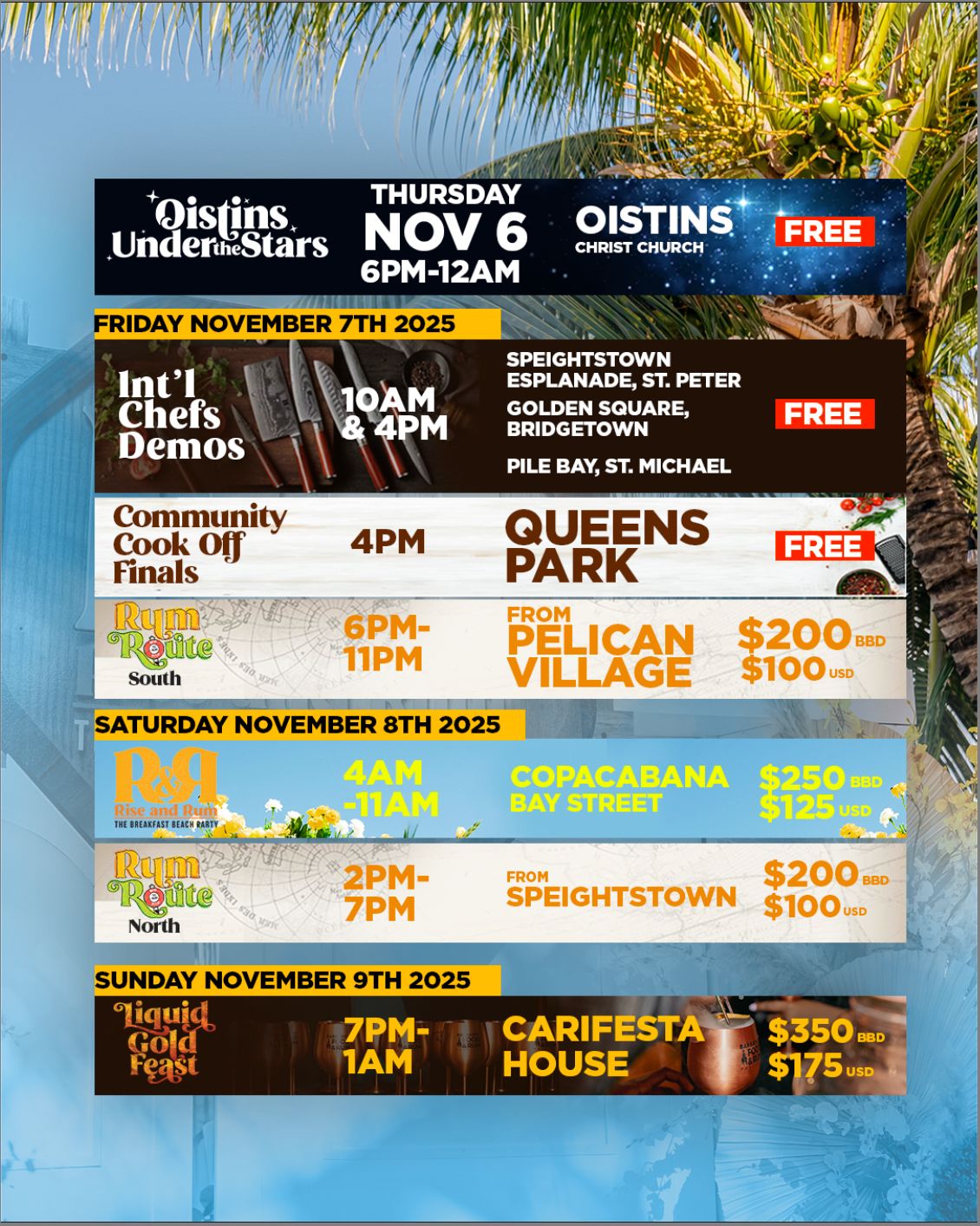 Join this vibrant celebration of the island’s rich culinary heritage and our world-renowned rum culture. This four-day event transforms our picturesque island into a paradise for food and rum enthusiasts. The festival showcases the talents of both local and international chefs, who come together to create a diverse array of dishes highlighting the flavours of Barbados.
